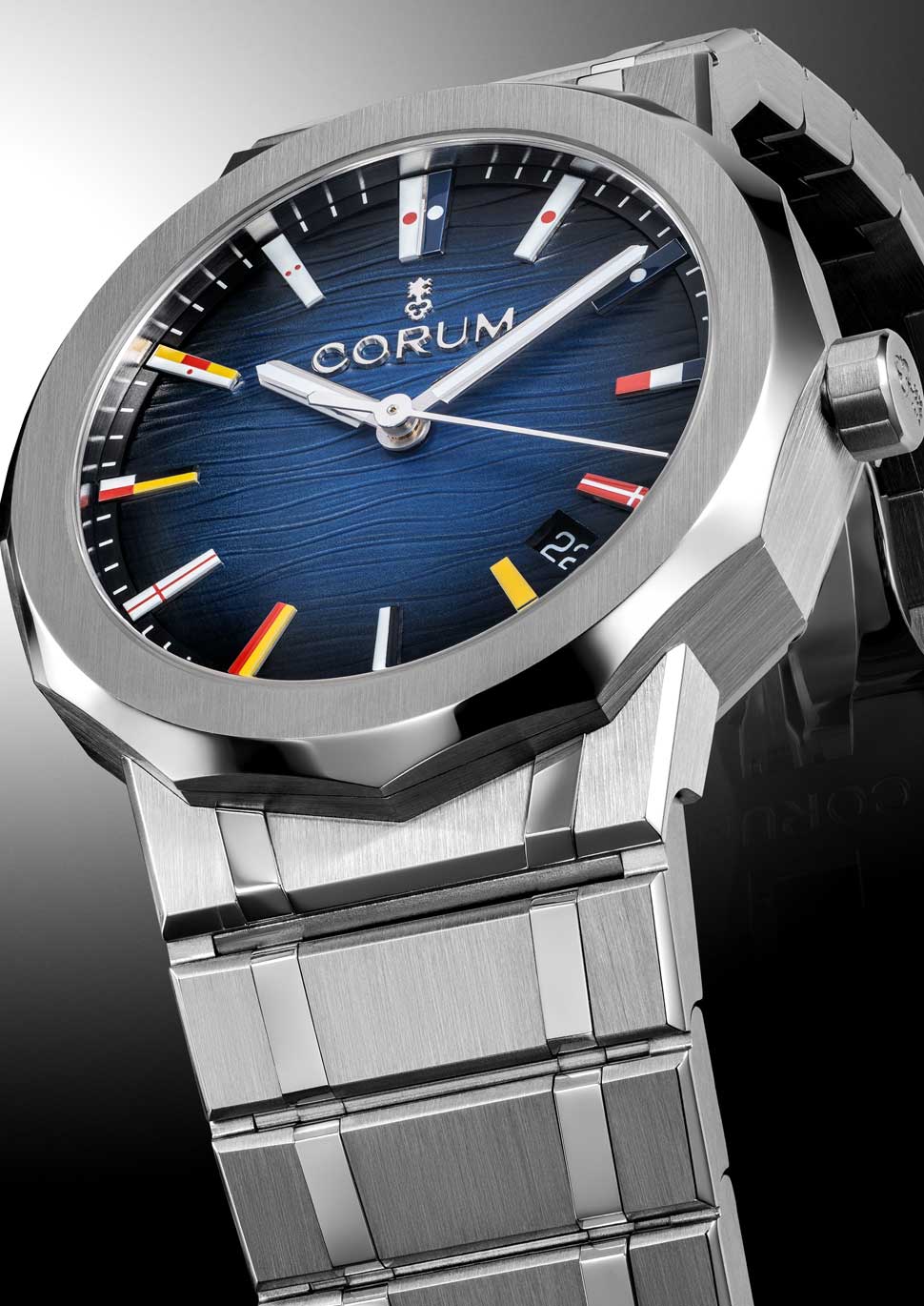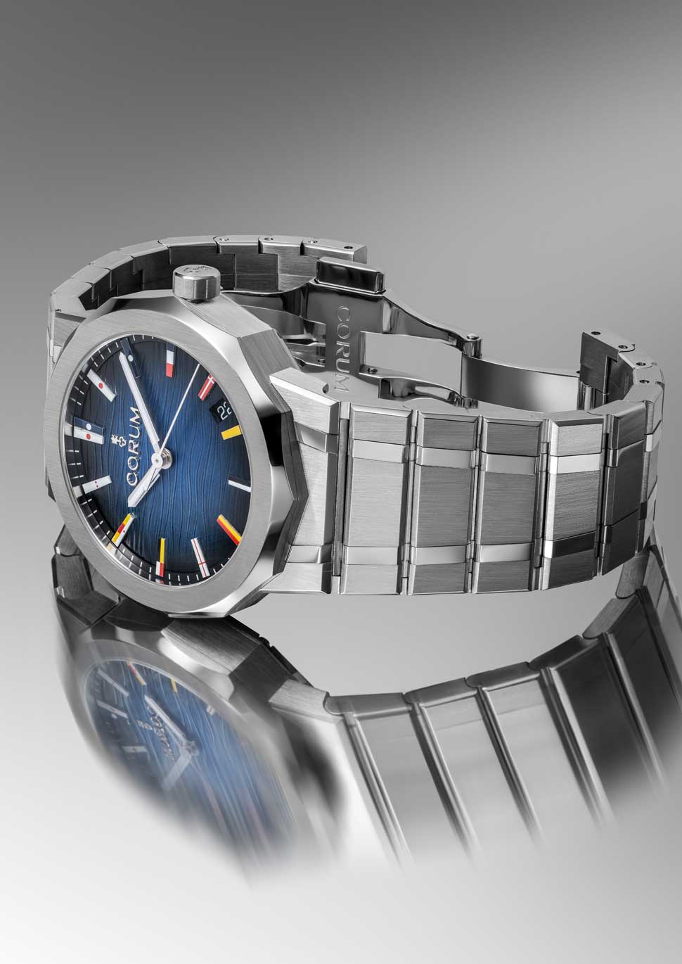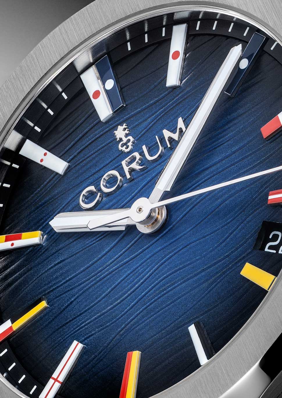 インデックスに国際海洋信号旗を施した、大胆で革新的なデザインはアドミラルシリーズの象徴です。